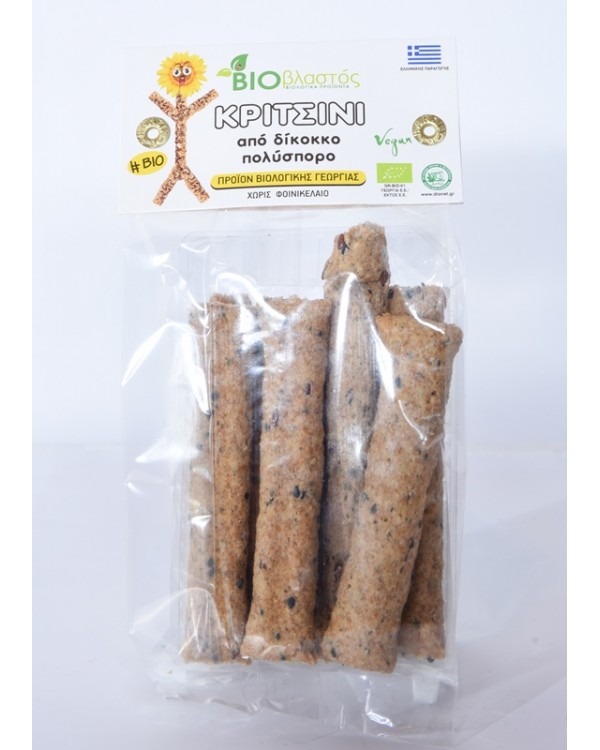 Το κριτσίνι από δίκοκκο αλεύρι – πολύσπορο απευθύνεται στους λάτρεις των σπόρων και έχει ανάλαφρη και ιδιαίτερη γεύση.