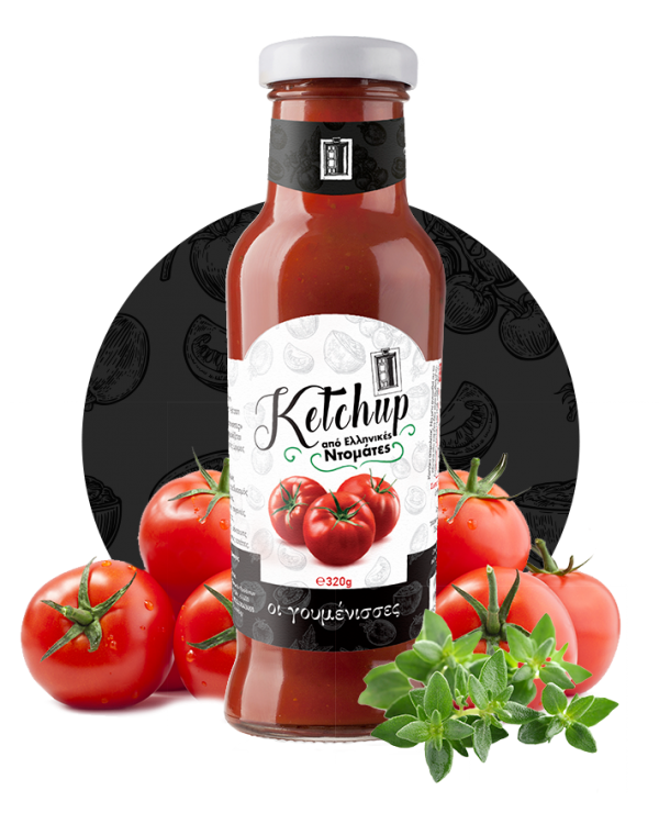 Fragrant, crimson Greek tomatoes are made into ketchup with a "different" taste than usual, which is worth trying. It deliciously takes off the sandwiches, the hot dog, the hamburgers and the french fries.